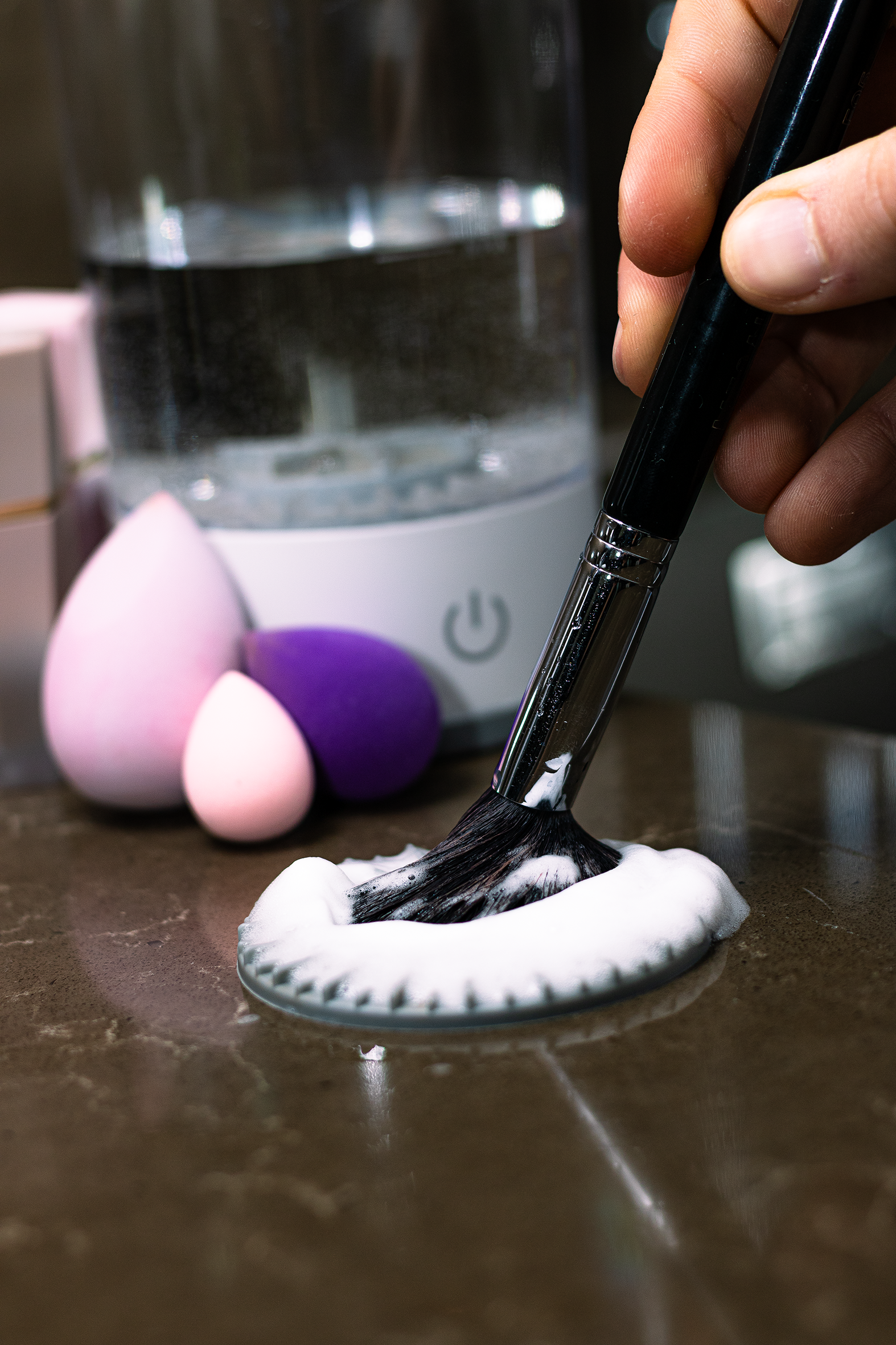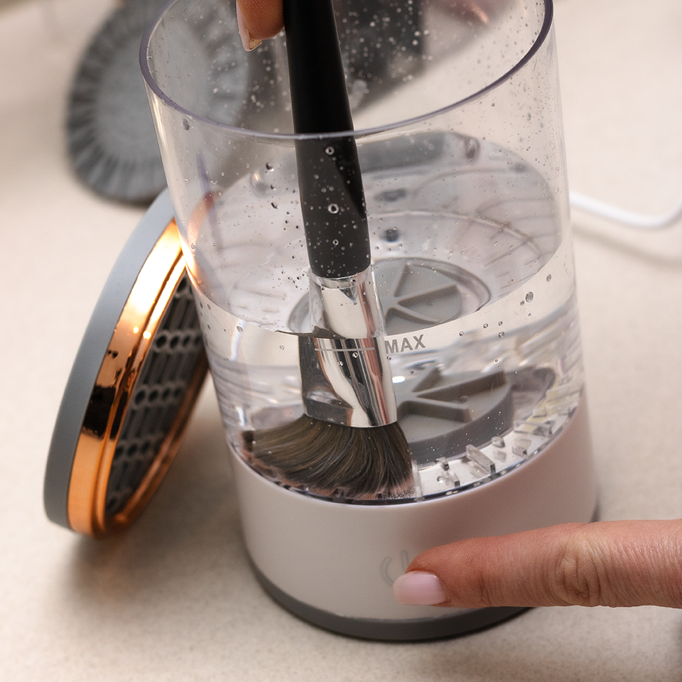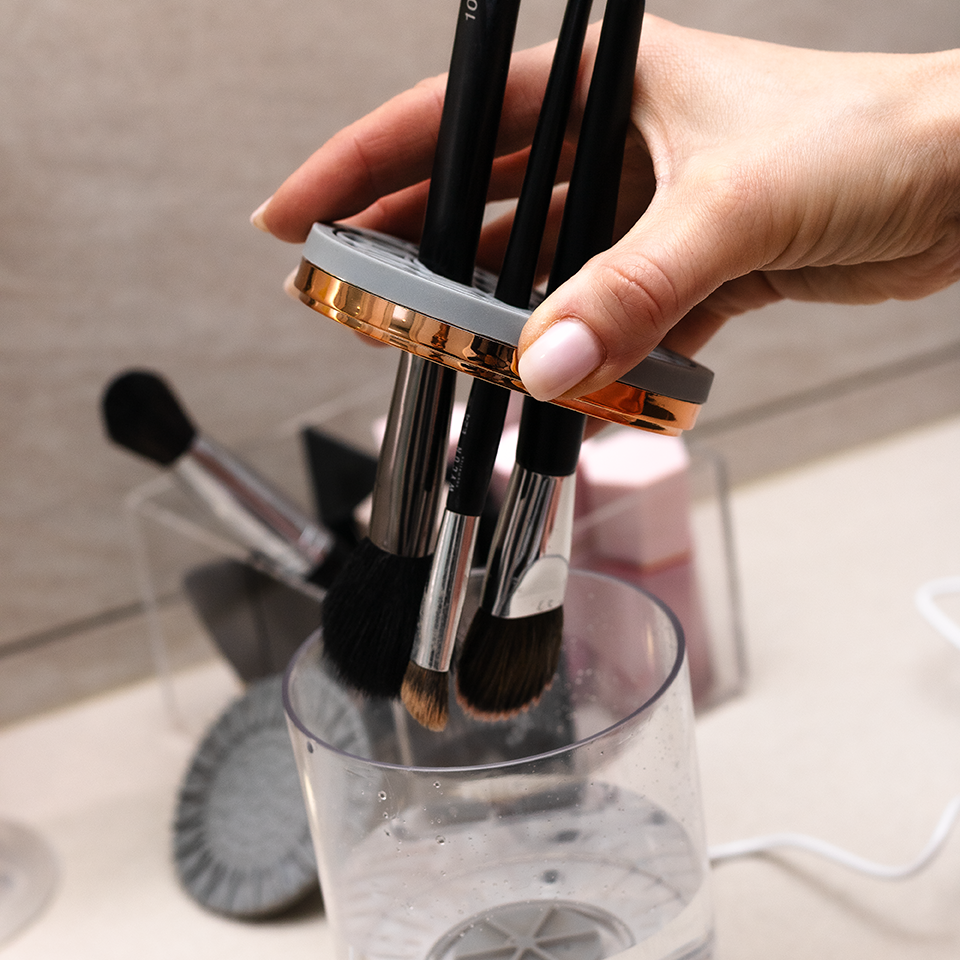 Prior to the cleaning process, we recommend using the scrubbing mat for brushes used with any oily concealers